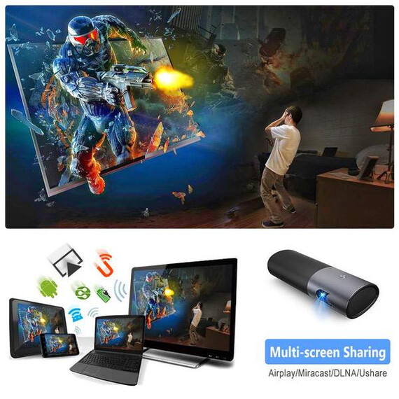 Make sure this fits by entering your model number. 【Lead-edge configuration】3500 Lumens, Unique Cool Shape, High Native Resolution 1280*800, Blu-ray 3D and Max 1080P Supported, 3D home and outdoors theater, Streaming Games from IOS/Android Wireless, Sharing Photos/Videos Wireless Projecting image up to 300inch! You surely can enjoy a happy movie night with family. 【Multi-function Play】Built-in loud volume speakers (5W*2 Speakers), even no external sound required, plus 2 USB flash drives at the same time and HDMI, it allows you to use it with Laptop, PCs, TV Box, Amazon Fire TV Stick, Chrome Book, Tablets, Blue-ray DVD player, SD Card, USB Flash Drive, Media players (Music, Pictures, Video). 【Extend Lamp Life】Built-in 15600 mAh rechargeable battery, Low power, Low energy consumption, Long lasting lamp life. With an lamp life of 30, 000 hours, this device is your emergency power source. It is greatly designed for indoor and outdoor movies in dark. 【Ideal for Home Entertainment and Business Presentation】This mini projector is suitable for home entertainment and children education. Also perfect for parties or camping projection in appropriate environment (dark). With several connection options (USB/Airplay/Miracast/DLNA/Ushare), it would more convenient for PPT, Excel, Text files presentations. 【100% Satisfaction Guarantee】1 year warranty provided for 100% satisfaction and 24 hours one-to-one Customer Service & Technical Support. Fully refund and return are acceptable with dissatisfaction. If your projector has any quality issues, please contact our customer service immediately.