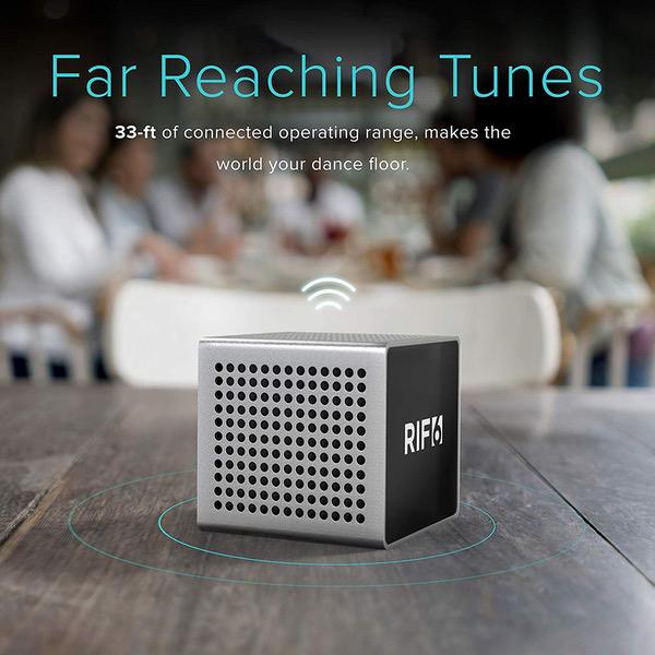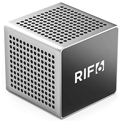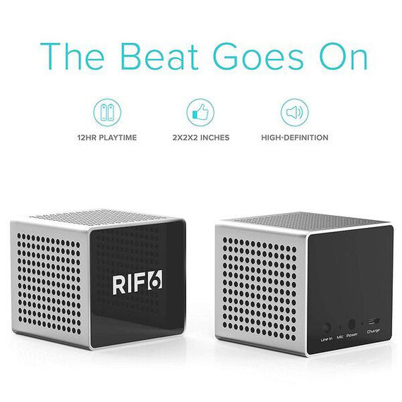 RIF6 Sound Cube Small Bluetooth Rechargeable Portable Speaker - 12 Hour Playtime, Full High Definition Sound for Smartphones Tablets & Laptops - Silver