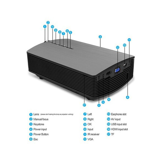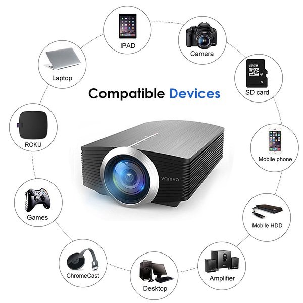 Smartphone Projector Vamvo Mini Portable Video Projector 1080P Support 1800 lumens 130" Screen USB/AV/SD/HDMI/VGA Input