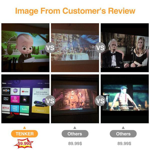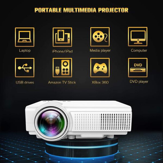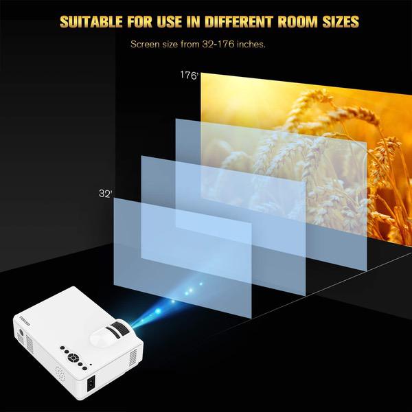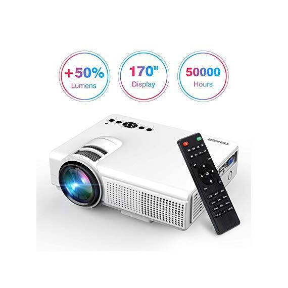 TENKER Upgrade Lumens Q5 Mini Projector, with Big Display LED Full HD Video Projector, Compatible with 1080p HDMI, Fire TV Stick, VGA, USB, AV for Home Theater Entertainment, Party and Games (White)