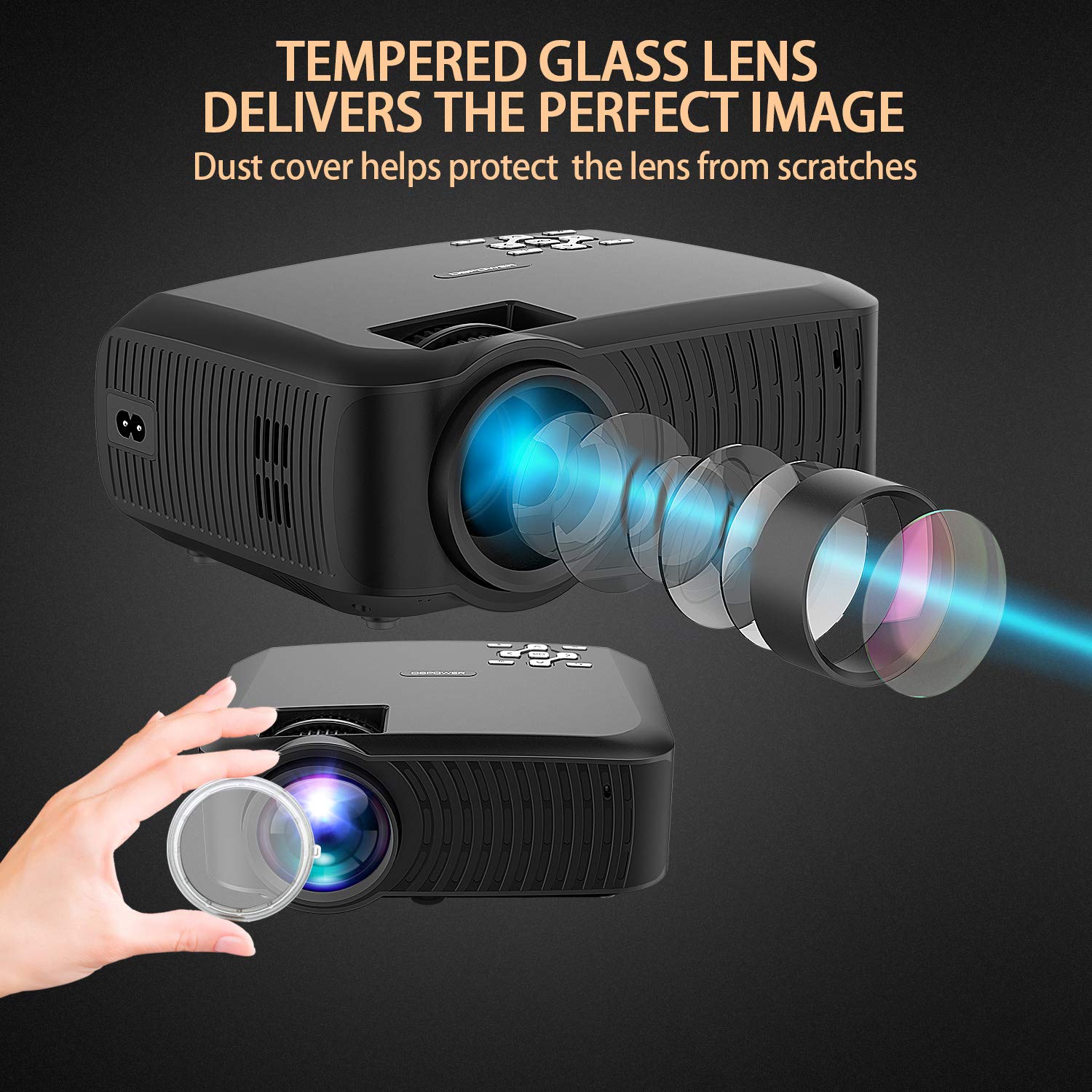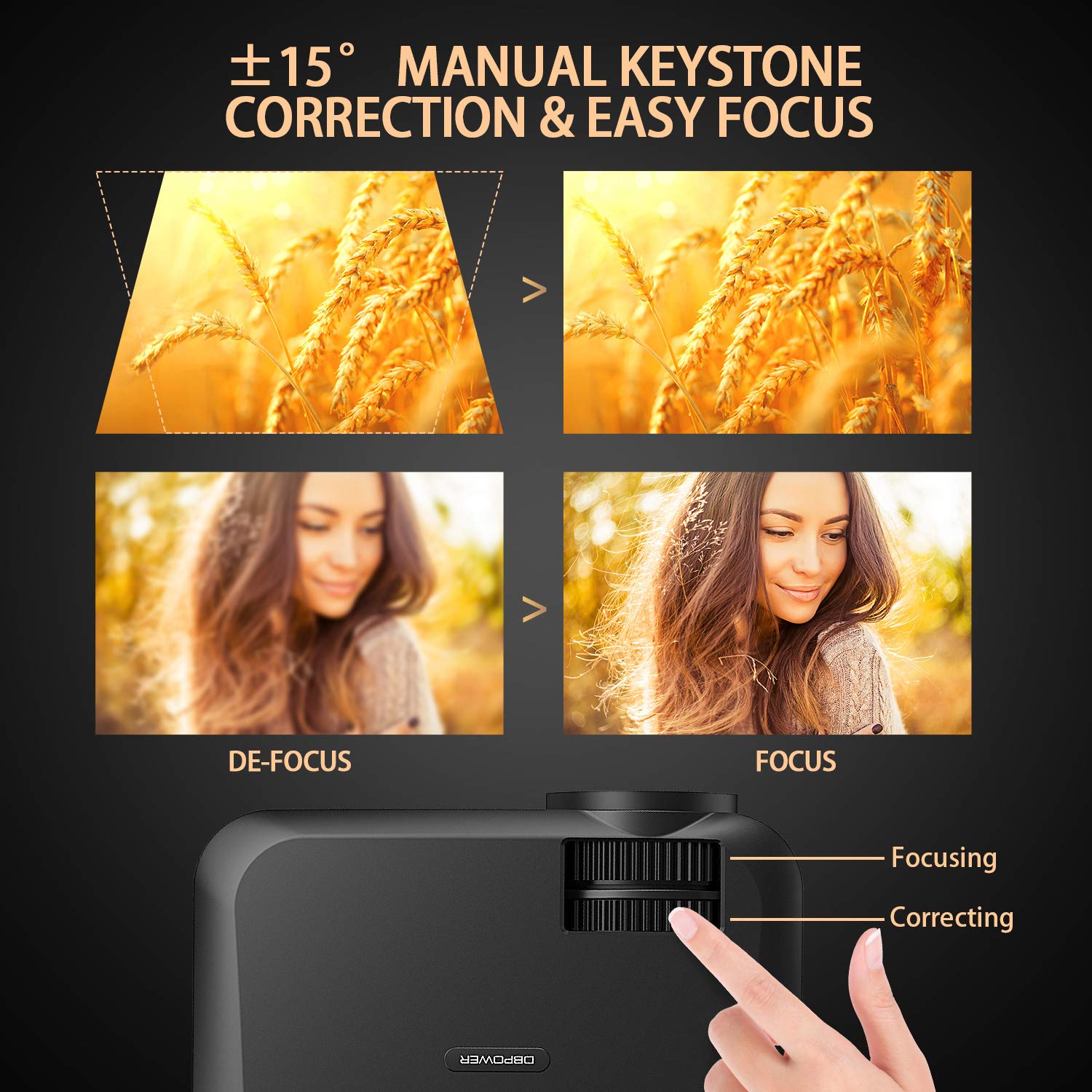 Video Projector, DBPOWER 120 ANSI Home Projector 176" Display 50,000 Hours LED Portable Video Projector 1080P, Compatible with HDMI,AV, USB, SD, Amazon Fire TV Stick for Home Cinema,Black