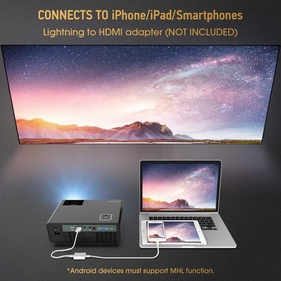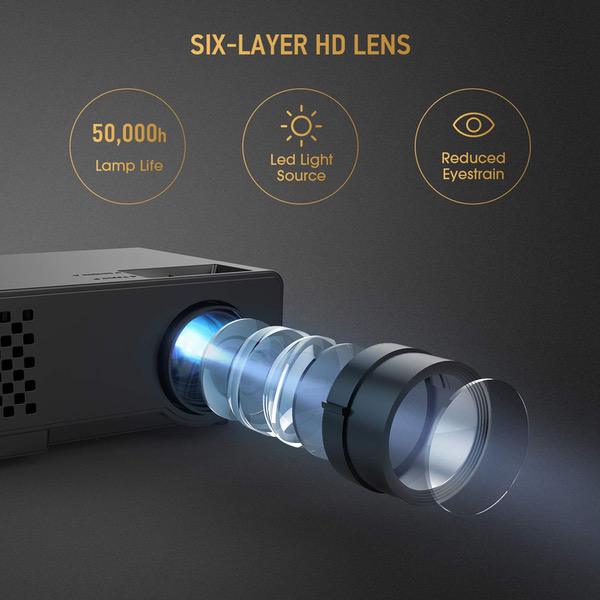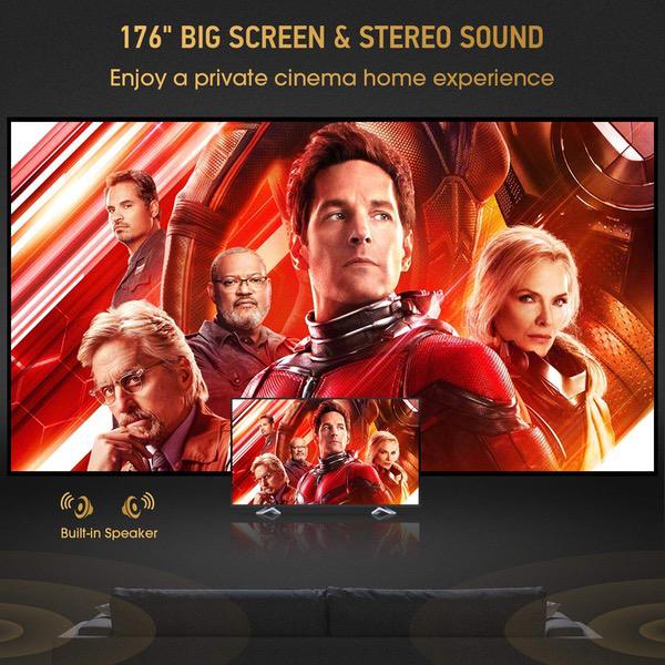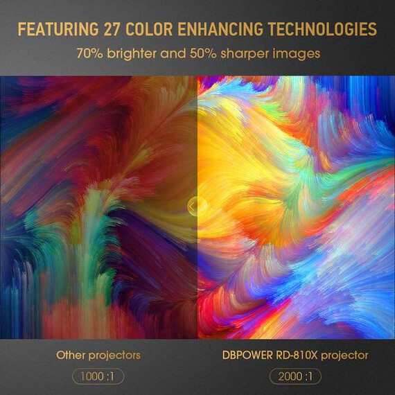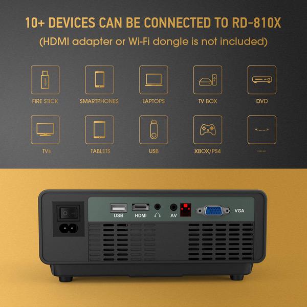 Video Projector -DBPOWER RD810 Portable Mini Projector, 176" Display, 1080P Supported 50,000 Hrs Home Movie Projector, Compatible with HDMI VGA AV USB