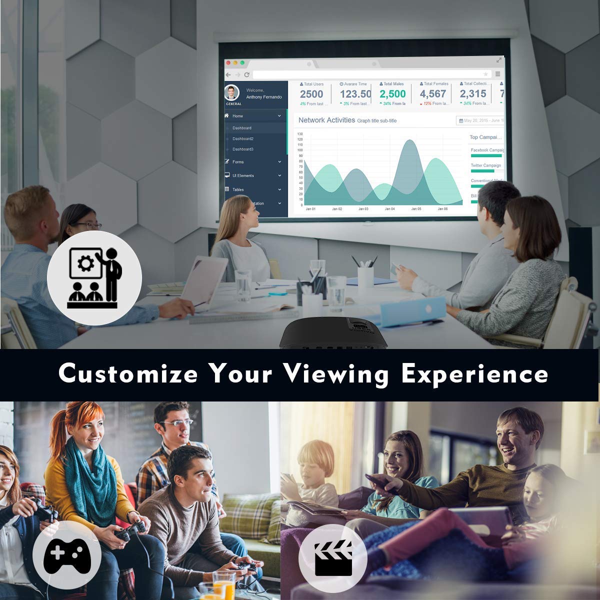 - 【Multimedia Connectivity】 As a compact projector, it is compatible to PC, laptop, iPad, iPhone and other smartphones, as well as TV Stick, Chromecast, Xbox, and PS3/PS4, even USB stick or SD-card. A true omnipotent multimedia projector.