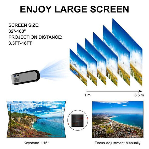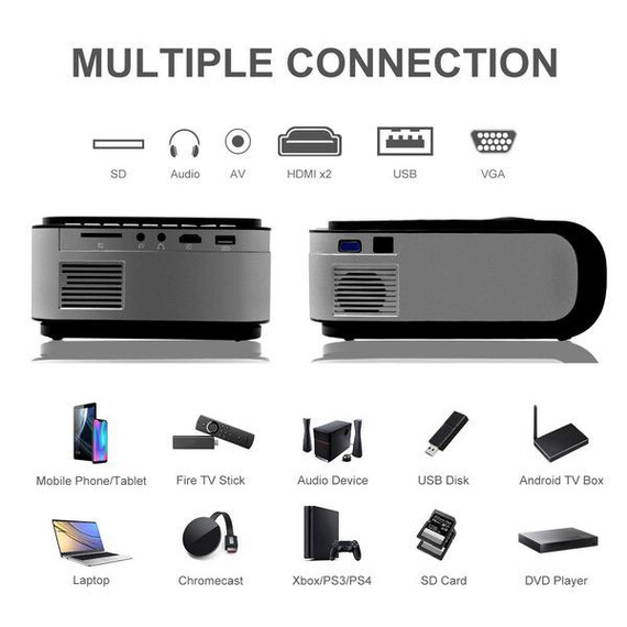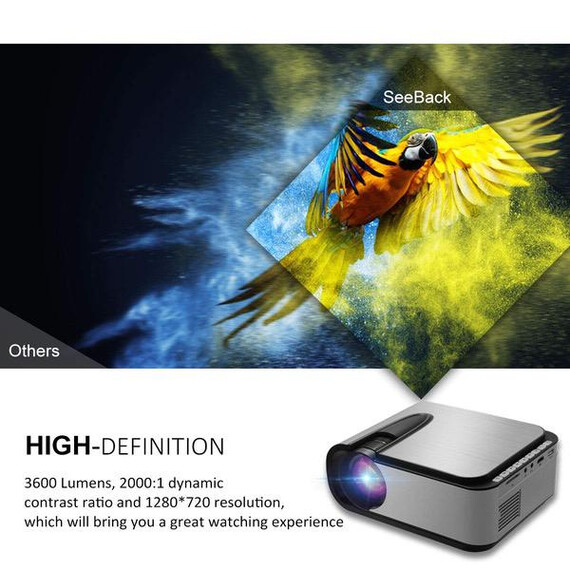 Video Projector Seeback 1080P Full HD LED Projector 3600 Lumens 30,000 Hrs Multimedia Home Theater Movie Projector for Indoor/Outdoor 150 Inch Compatible with USB/HDMI/SD/AV/VGA
