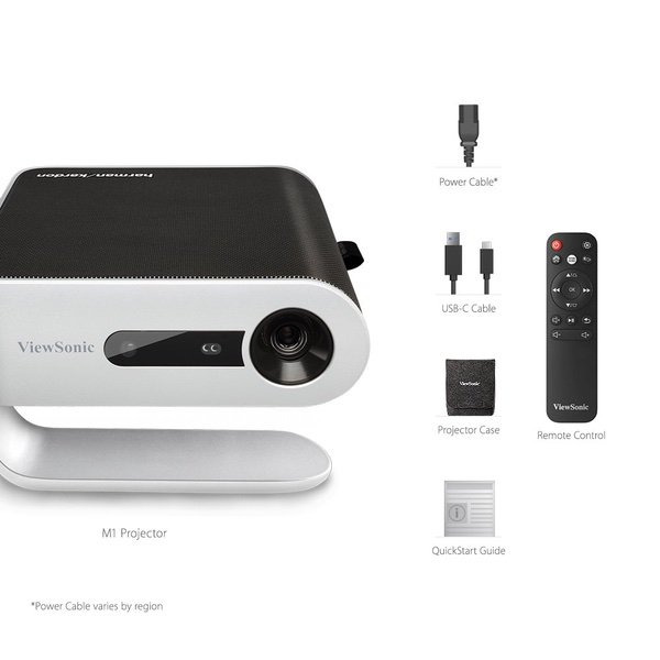 - INCLUDED IN THE BOX: M1 Projector, USB Type C Cable, Remote Control, Projector Case, Quick Start Guide, and Power Adapter