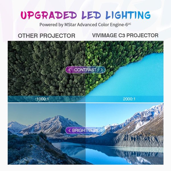 Make sure this fits by entering your model number. 【Remarkable Visual Performance】: Vivmage C3 Projector adopts advanced LCD technology providing 2600 lux brightness; brighter and sharper than ordinary projector. Support 1920x1080 resolution, 2000:1 contrast ration which is ideal for home entertainment. It provides a watching size from 32" to 172" with the projection distance between 4.9ft to 16.4ft. 【Upgraded Audio Enjoyment】: Superior bass performance, whether you watch movies or play games, our projector offers well defined bass from a compact enclosure; bringing more power with outstanding sonic purity and performance. 【Stunning Cinematic Experience】: Vivmage C3 Projector adopts upgraded LCD technology for even and uniform distribution of light, avoiding blurry corners to guarantee visual comfort and true cinema experience. 【Multimedia Compatibility】: Vivmage C3 Projector is fit for playing videos, movies, TV series, photos sharing, sport matches etc. Easily connected with your smartphone, laptop, TV Stick, PS4, X-Box ONE, Wii, Switch Nintendo and more. AV, HDMI, and power cables Included. Not Recommeded for Business. 【3-Year WARRANTY PROJECTOR】:Vivimage, a trusted brand of projector. Professional customer assistance & technical support is at your service. All projectors are FCC, RoHS and CE certified.