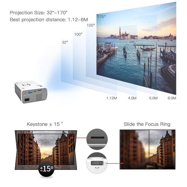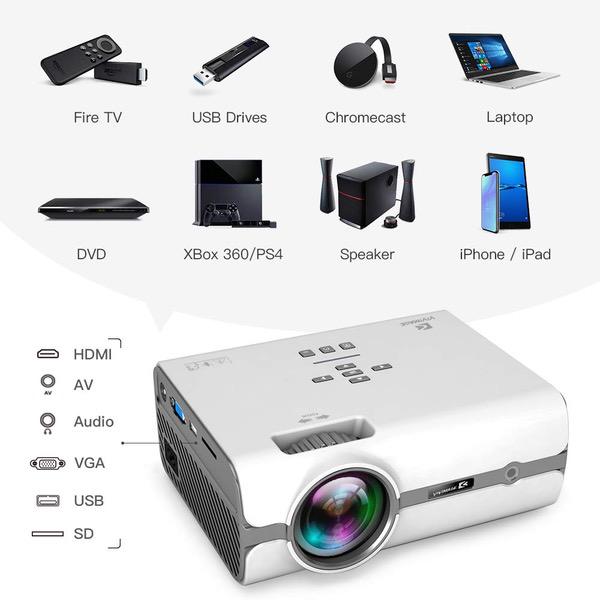 ViviMage C460 Mini Movie Projector, 2500 Lux 1080p Supported, Portable Home Cinema Indoor/Outdoor Use Compatible iPhone/PC/DVD/Fire TV Stick/Video Games