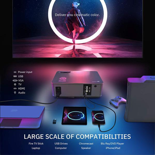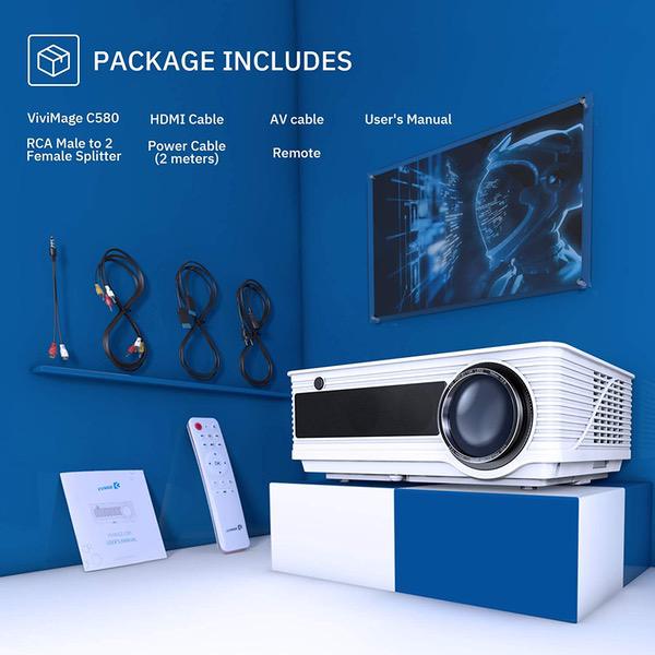 • [Enjoy Awesome Visual Experience] VIVIMAGE C580 Movie Outdoor Projector provides awesome visual experience. 1280 X 800 native resolution is suitable for professional use and provides +80% brightness than ordinary projector. Mstar Advanced Color Engine provides contrast of 4000:1. Great choice as home cinema for movie nights for the outstanding projection outcome.