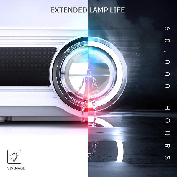 • [Upgraded Features] Dual stereo speaker provides excellent audio support and decent audiovisual effects. Upgraded cooling system optimizes the heat dispersion. Robust lamp extends its life span up to 60,000 hours.