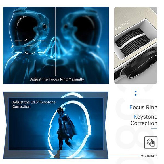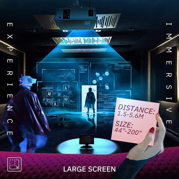 • [More Projection Possibilities] Display size varies from 44”to 200”, with projection distance of 1.5m to 5.6m. Keystone and Focus ring are manually adjustable. More projection possibilities with ceiling mount hole on the bottom.