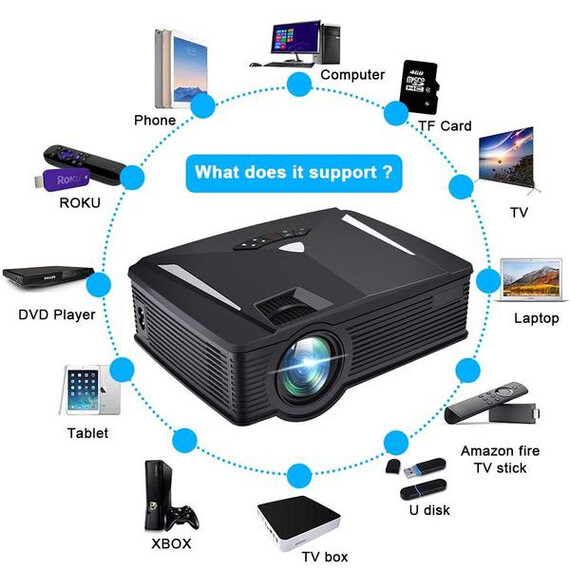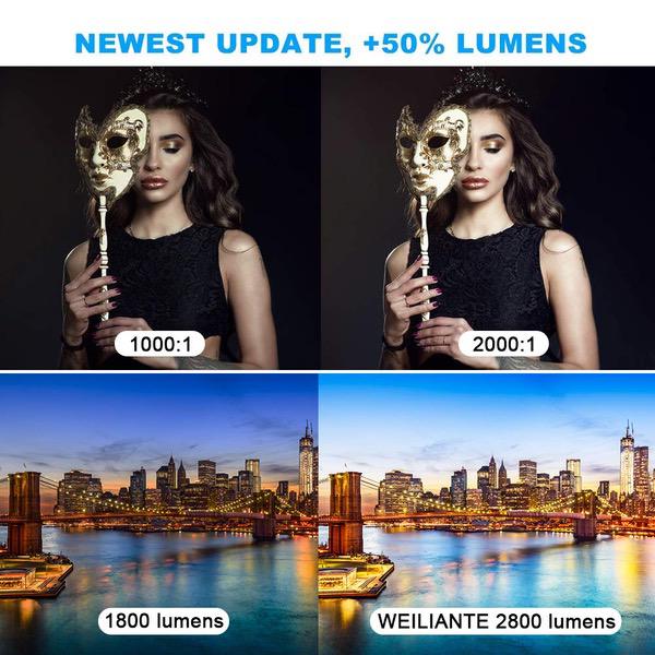 Make sure this fits by entering your model number. UPGRADED 2800 LUMENS AND 70% MORE BRIGHTNESS: WEILIANTE MOVIE PROJECTOR is upgraded 2800 lumens and 70% brighter than other ordinary mini projectors, Support Full HD, ideal for home entertainment. Supporting 1920x1080 resolution, 2000:1 contrast, works great for indoor and outdoor movies, best to work in dark. Note: Not recommend for PPT or office presentation. MULTIMEDIA PORTABLE PROJECTOR: Compared with other projectors, WEILIANTE hd projectors has wifi function, it could directly deliver the smartphone screen iPhone/Android smartphones through wifi to projector for a big display view experience. By using our WIFI projector, you don't need to order the variety of adapters anymore! More convenient. FAMILY HOME ENTERTAINMENT'S BEST CHOICE: WEILIANTE portable projector works great with video games like PS3, PS4, WII, XBOX. It can also work with PCs, laptops, blue-ray DVD players, TV box, Amplifier, Amazon Fire TV Stick, Chromcast. You can also use wifi to connect our projectors to your smartphones. And For iPhone, an apple lightning cable can achieve instant connection too! At present, no other manufacturers can do that. WHAT ELSE YOU MUST KNOW? WEILIANTE WIFI projector native resolution is 800*480, and 480P, 720P, 1080P are all supported. The aspect ratio is 16:9/4:3, with 2200:1 contrast ratio. The lamp life is up to 50,000 hours. The display size is 32- 180" at the distance of 1.2M-5M. WEILIANTE Video projectors are equipped with an innovative cooling system with heat dispersion, as well as a noise suppression technology which cuts fan sound in half. 3-YEAR WARRANTY (100% MONEY BACK GUARANTEE): We offer our customers a 3-year 100% Money Back Guarantee and professional customer service & technical support. Please feel free to contact our customer service if you have any problems.