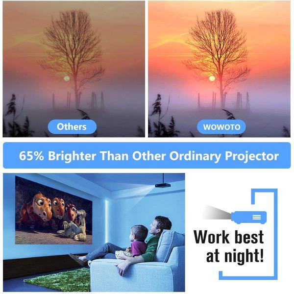 WOWOTO H8 3500 Lumens Mini Projector LED DLP 1280x800 Real Mini Home Theater Projector WXGA Support 3D 1080P HD Perfect for Entertainment Business Wireless Screen Share Android HDMI USBx2 RJ45 176“±